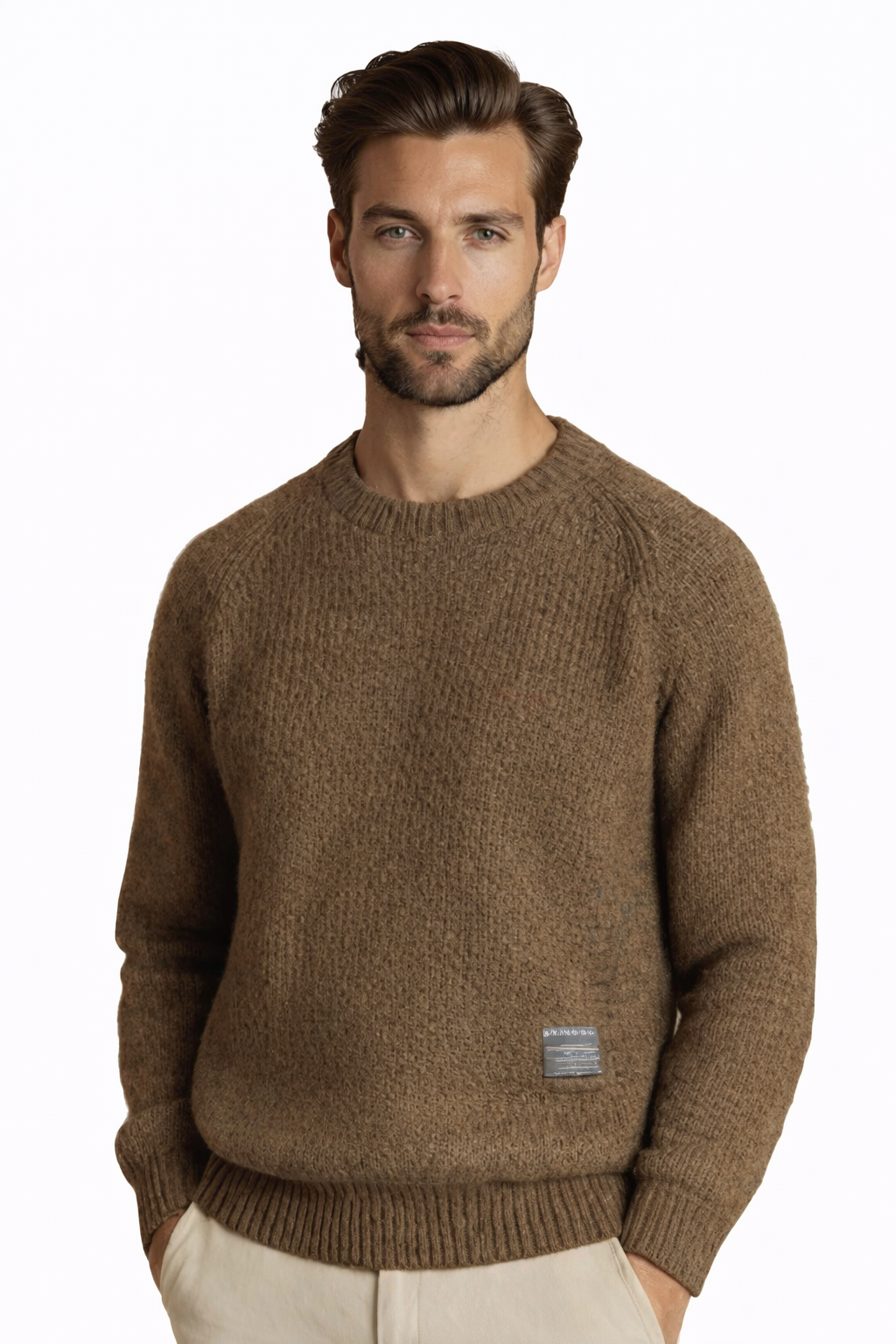● Tidløst udtryk – Det klassiske kabelstrikmønster og den runde hals skaber et elegant og alsidigt look.